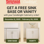 Get a Free Sink Base or Vanity with Your Candlelight Cabinetry Order! Upgrade your kitchen or bath this winter with Candlelight Cabinetry — and enjoy a complimentary sink base or vanity as our gift to you! From December 8, 2025, through February 28, 2026, when you place a qualifying order of 14 boxes or more, […]